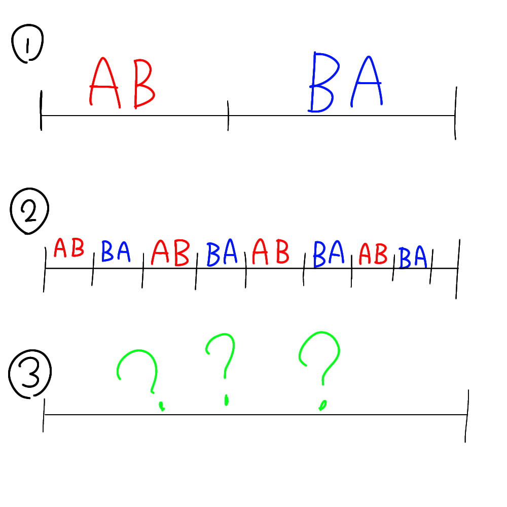 今日はAB明日はBAでやろう興奮したからまとめて1日にしようだと②だね