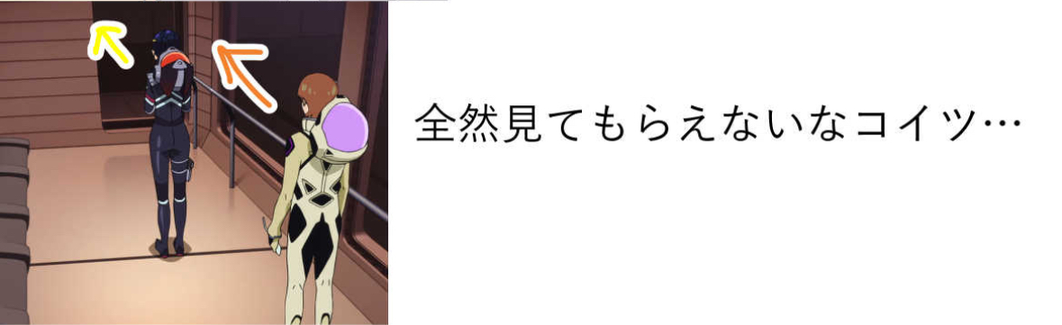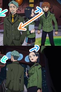 ちなみに4話シイコ戦エグザベがシャリアに後ろから話しかけてるところ