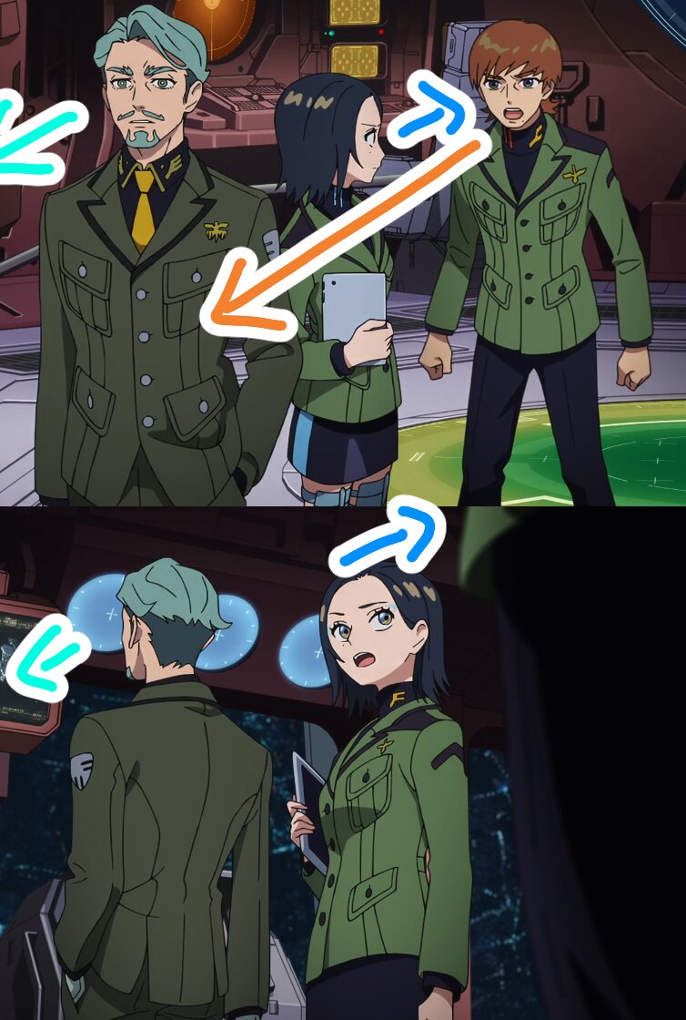 これ見て気になってキシリア様への報告シーン見てきたんだけどキシリア様はエグザべに対しての返答の時は振り返らず、ニャアンを見る時に振り返るんだな