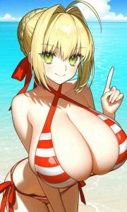 赤セイバー服は男装してる(つもり)だから、胸も控えめになるんだよな