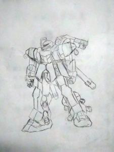 解説:UC0095年の伯国防衛戦争後に開発計画が立てられた、バウ・ゾウムの近代化改修機案。ガ・ゾウムの部品からなる下半身をガ・ザルパのものに改装したもの。