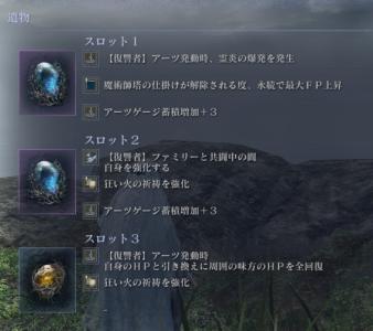 あれって『火属性攻撃力+2(+1)』と『狂い火の祈祷を強化』の遺物を3積みしてるタイプ? - 38二次元好きの匿名さん25/07/25(金) 00:09:11