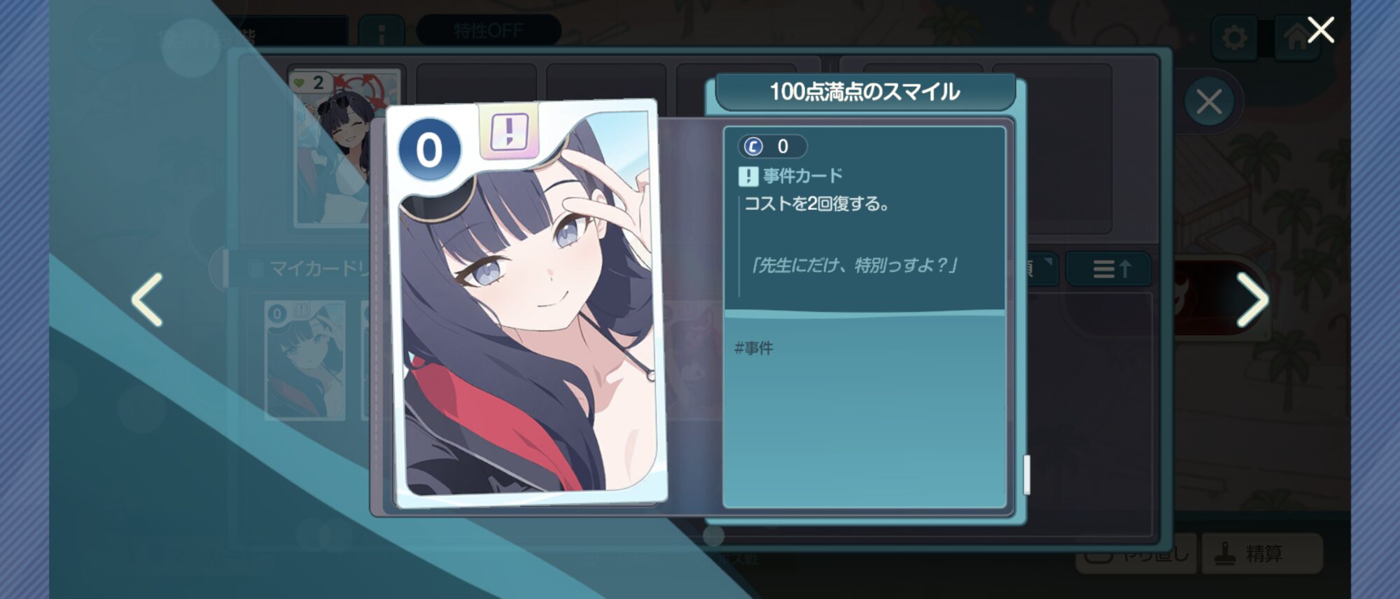カードゲームは戦闘マスでリミット解除、キャラマスでシズコ手に入れるまでリセマラして、休憩マスでリミット解除とコスト回復以外のカードを捨て去れば後は何も考えない脳筋プレイで最後までクリアできるからな