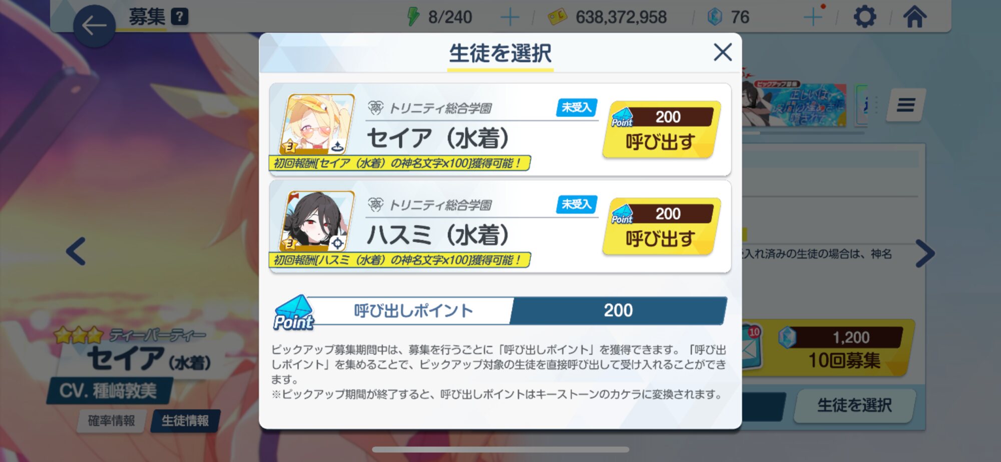 セレチケ、とりあえず引けなかったら水着シロコを候補に考えている