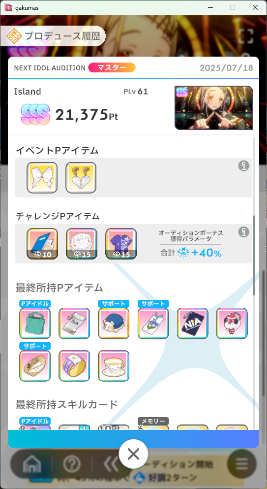 試験に関しては、天真爛漫で集中稼ぎつつ他アイドルの固有で好調を盛りまくって終盤に冠菊リーリヤのスキルを使えば結構スコア出るよ - 32二次元好きの匿名さん25/07/25(金) 20:19:10