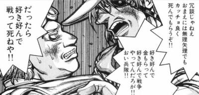 冗談じゃねえ おまえには無理矢理にでもカッチョ良く死んでもらうぞ!! 好き好んで金もらって好き好んで戦争やってんだろが!! おい兵隊!! だったら好き好んで戦ってしねや!!」 - 30二次元好きの匿名さん25/07/27(日) 01:13:58