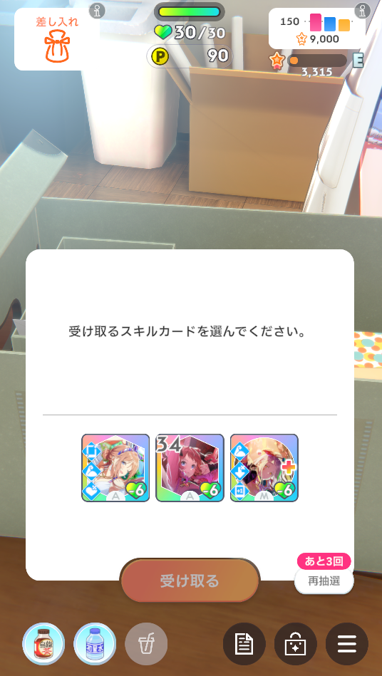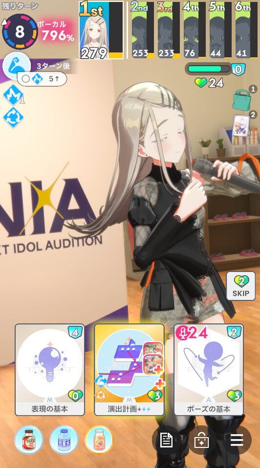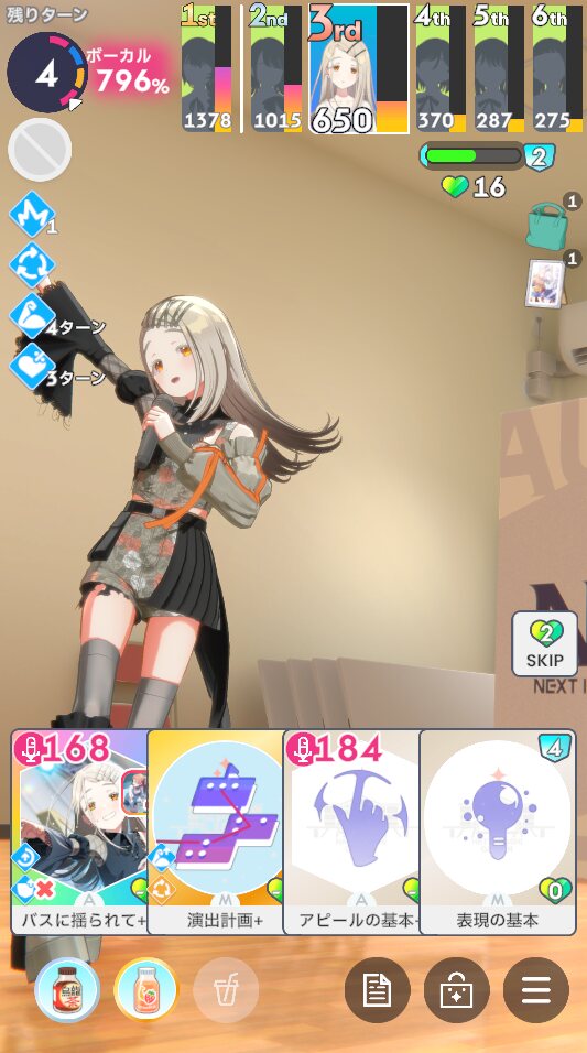 ・予定や使用スキルカードなど、プロデュース中の選択肢をダイスで決定しながらNIAプロを進んでいきます、ままならない日々を楽しもう