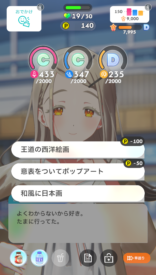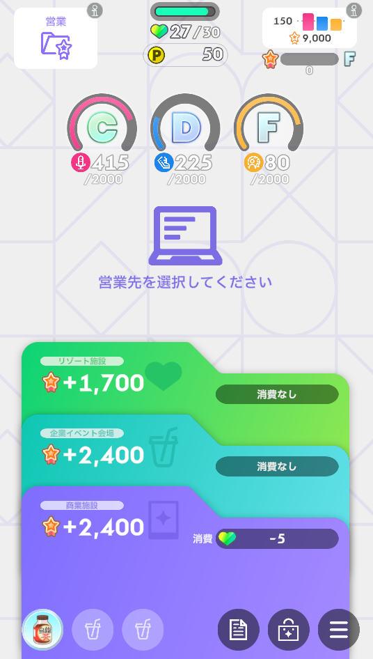 ・体力やPポイントなどによって実行できない選択肢の場合は振り直します