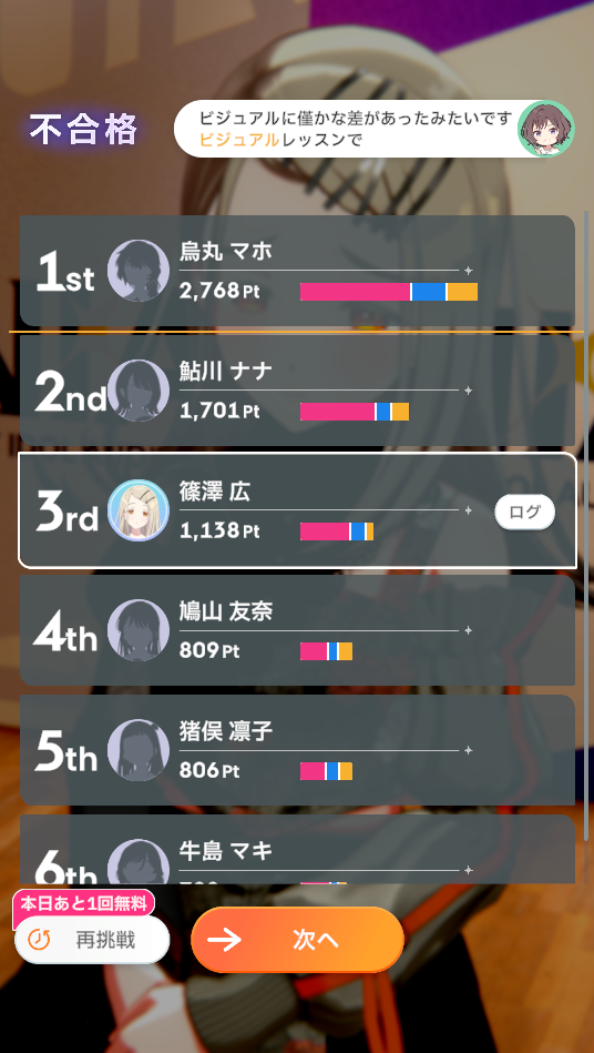 ちなみにこの後手動でオーディション回してみましたが全然勝てませんでした