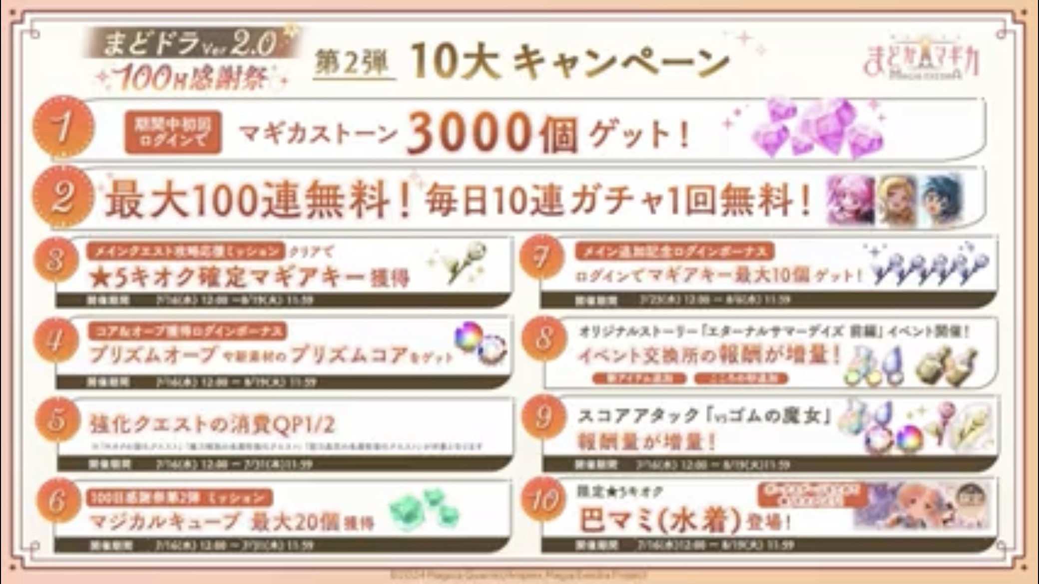 記念でマギアキー最大10個が貰えるログボ実施7/23 12:00~8/6 11:59
