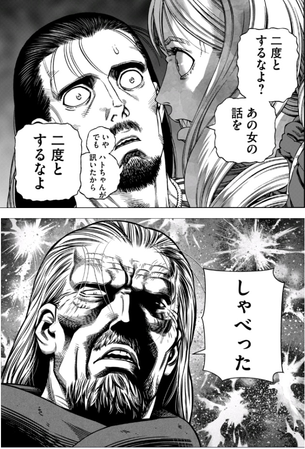 しかし、エイナルは既にあの時点で既に人を殺してしまっていて、「非暴力」で事をなんとかしようとしているはずのリーダーのトルフィン自体が、憎しみの心を持つストルクの気持ちを軽んじたことでストルクの暴走を招いてしまった