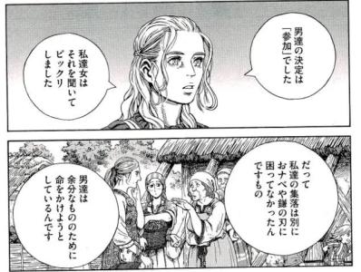 ついでに言うなら『巨体女がタフさに任せて護ってくれたからトルフィン妻子は無事で無傷で新生児も無事出産』ってところに強いご都合主義を感じたわ