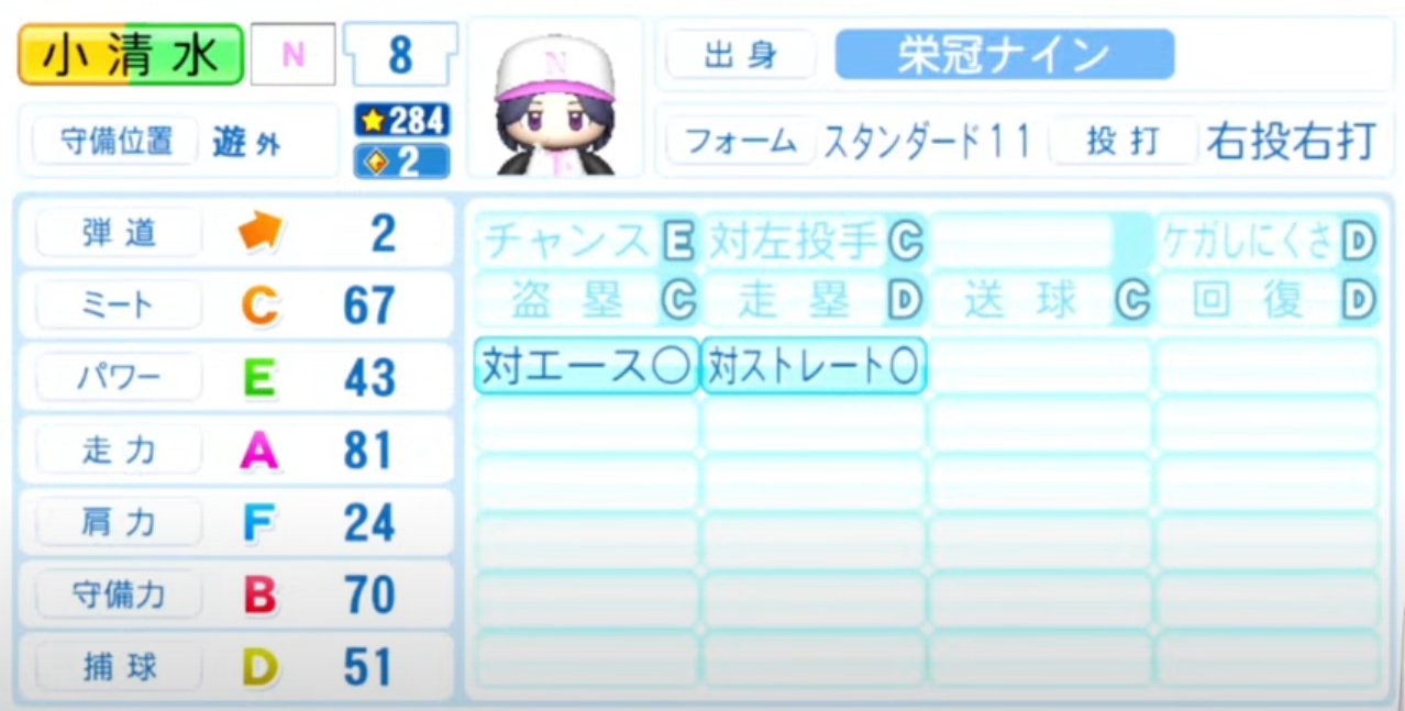 1.小清:対スト対エースが社に刺さるが今までの成績悪し