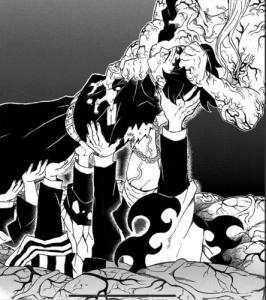 最後の仕事だ、と鬼の王になってしまった炭治郎を助けにいく師匠に