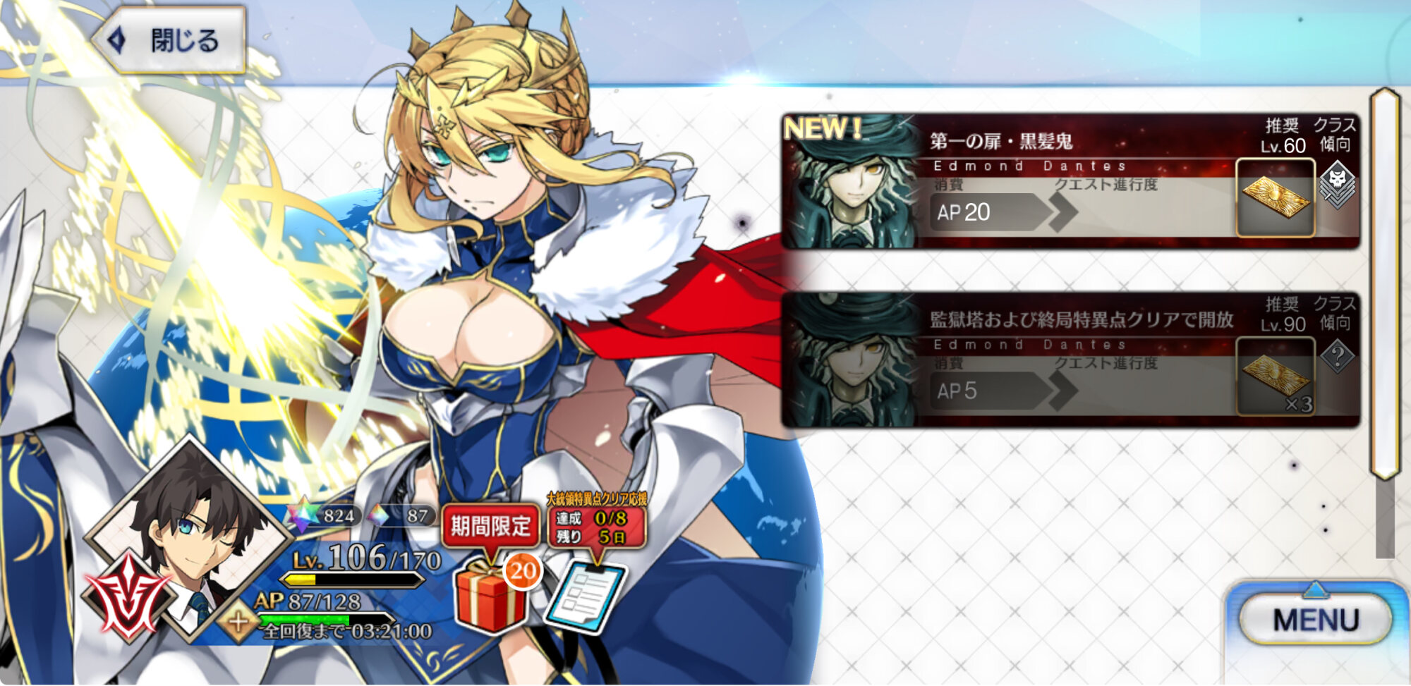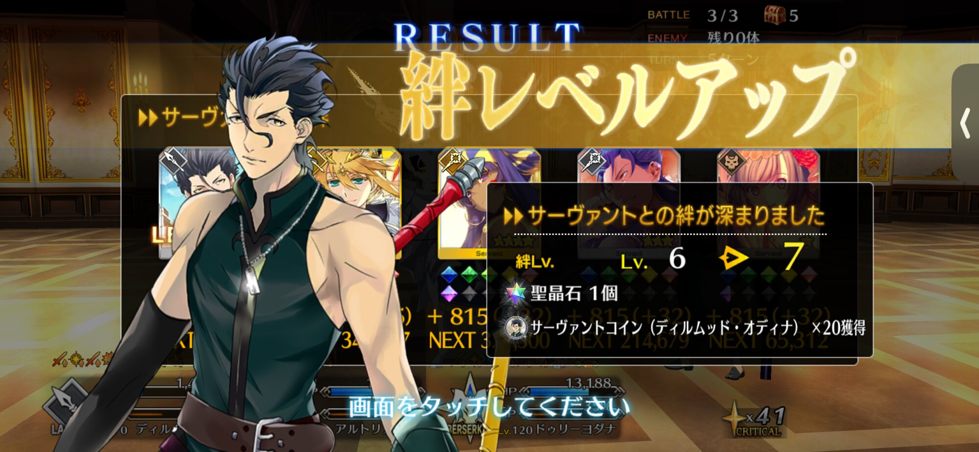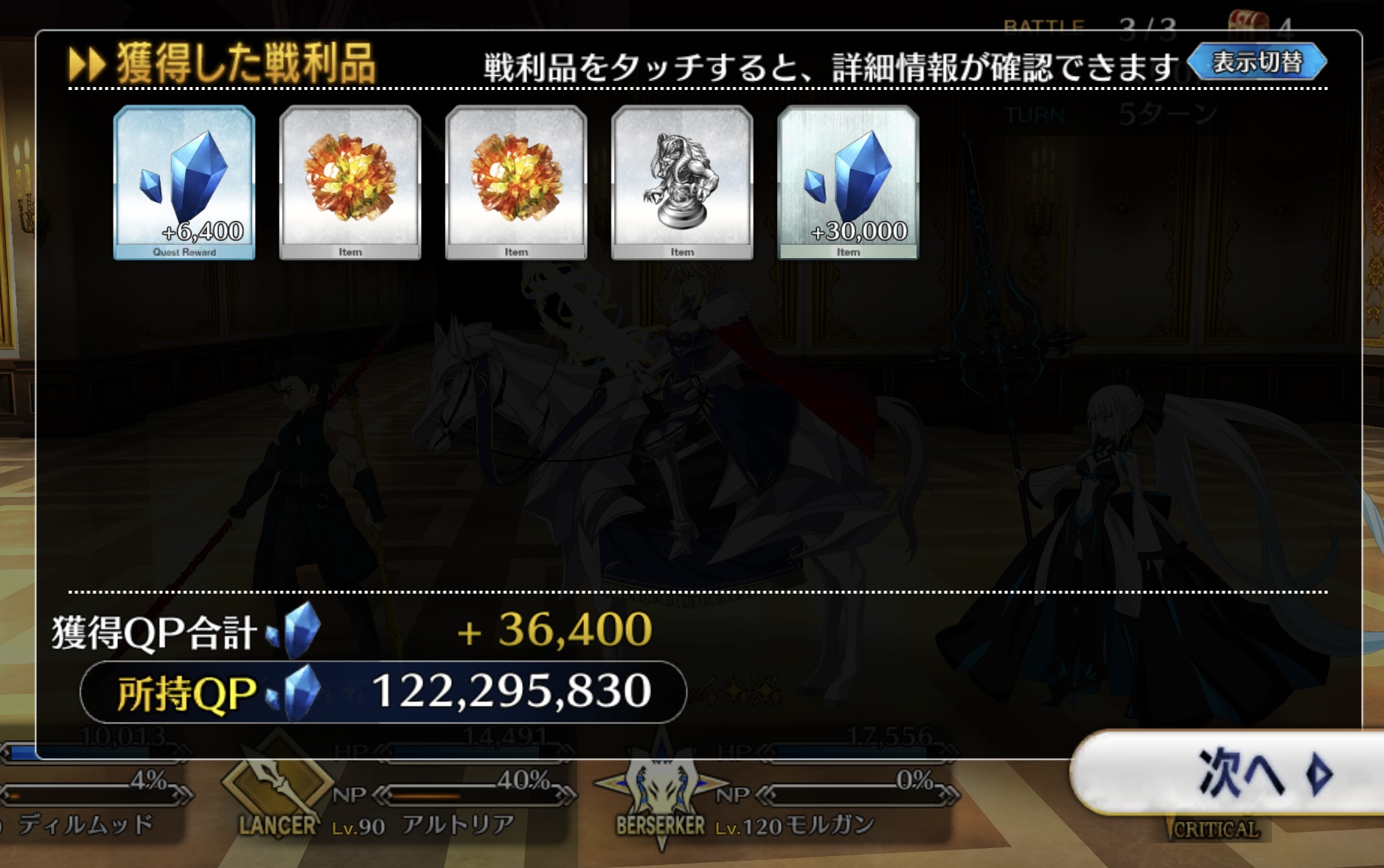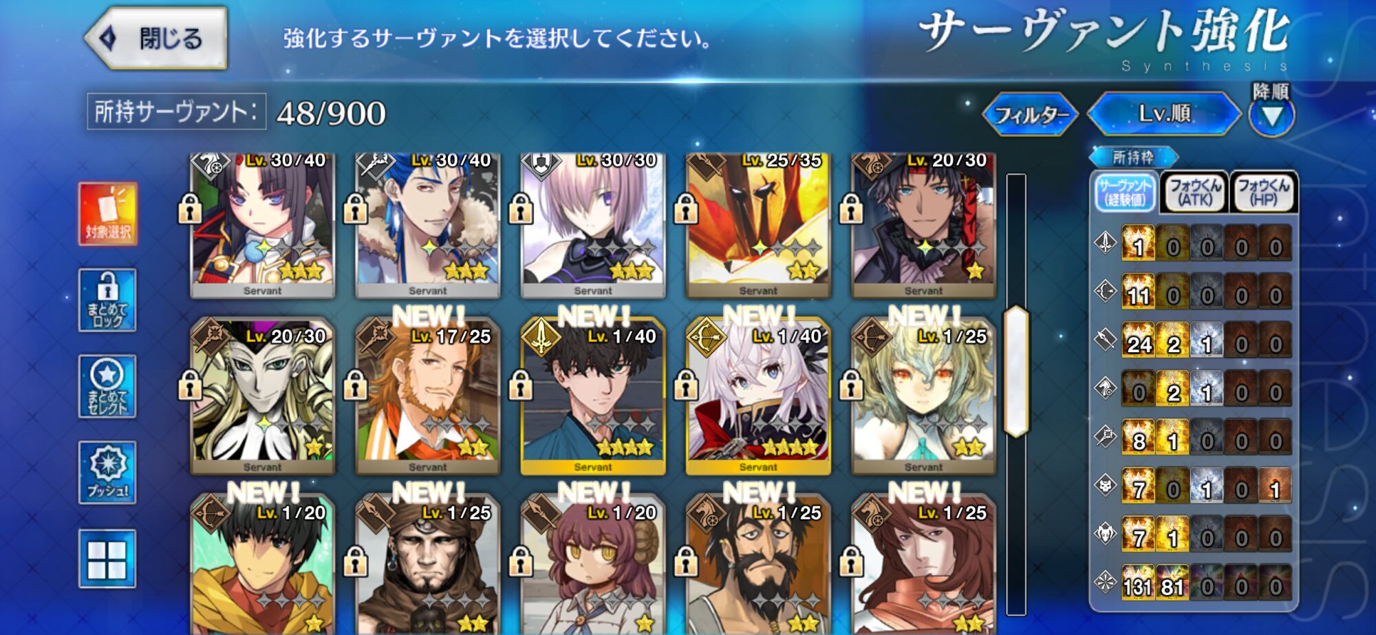 章一つ事に配布1人を最終再臨出来る分と宝具レベルを上げるのを目安にするといい
