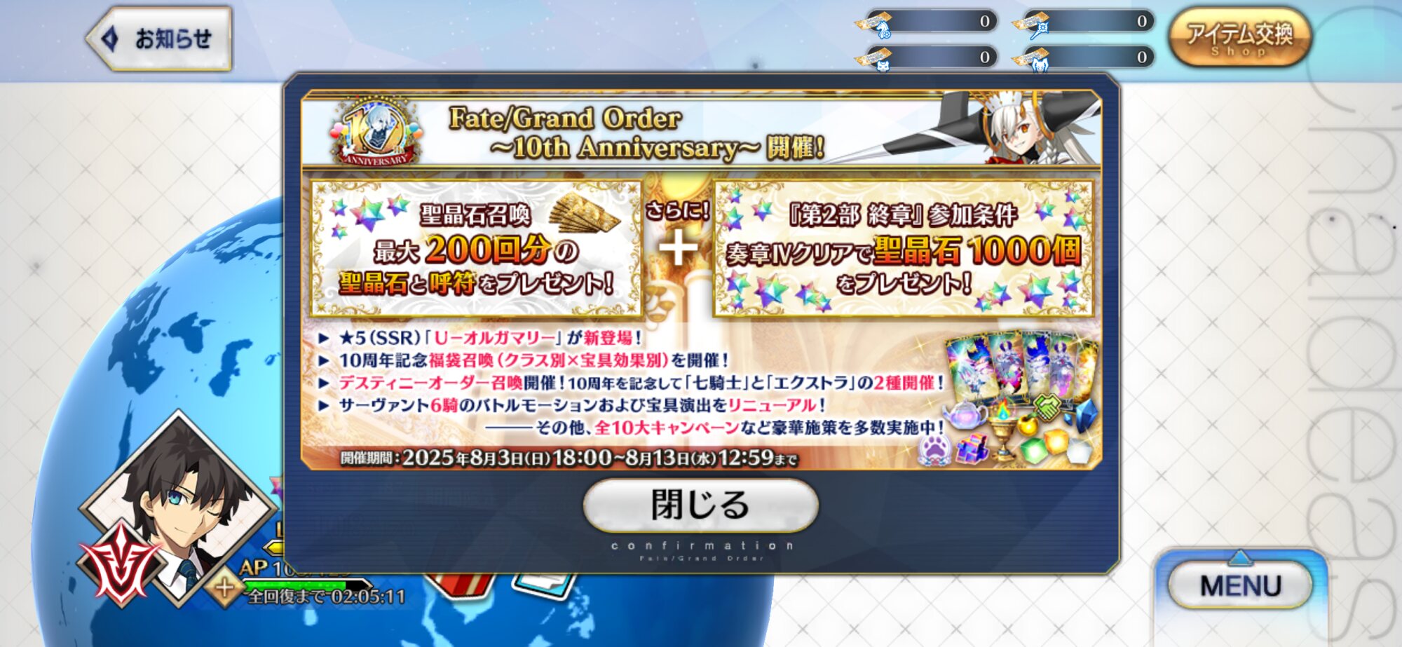 8/3の夕方以降に10周年記念キャンペーンが始まると思う