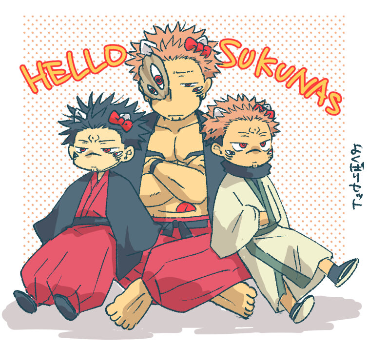 虎杖と伏黒の頭にちょこんと乗ってるのも野薔薇ちゃん様のでっかいうさ耳とリボンも謎の力で動く先生の耳も可愛い!