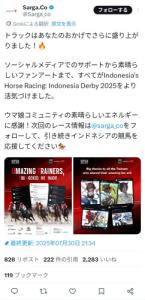 インドネシア、ウマ娘で興味持った人にいきなり自国三冠馬誕生の瞬間見せつけるのマジで持ってる