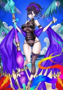一臨はメリハリのある肢体が際立つシックな黒の水着!二臨は小鳥遊立花を彷彿とさせる厨二病スタイル!三臨は絵師様の同人誌に出てきそうなブルーのアイドル風ビキニ!どこに平安時代の貴族の要素があんねん!よしんば日本人やて気付けたとしても、紫式部やとは思えへんわ!
