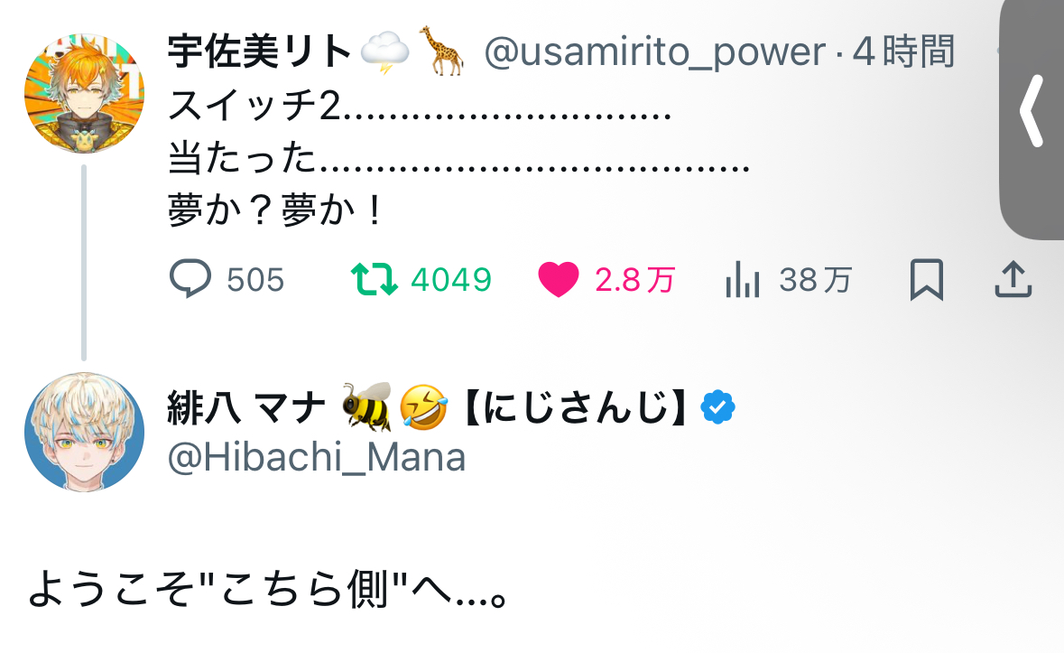 たしかに久しぶりかも。Switch2当たって?叫んだのかな。