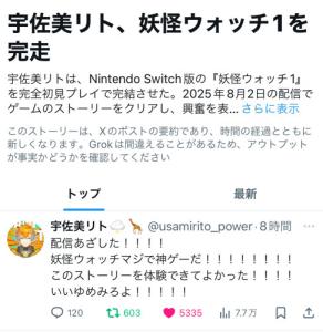 とりあえず宇佐美の喉が治ってSwitch2が無事当たってますように! - 165二次元好きの匿名さん25/08/05(火) 00:23:59