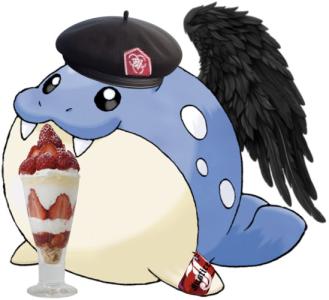 ハスミちゃんと一緒にスイーツを食べるハスミザラシちゃん