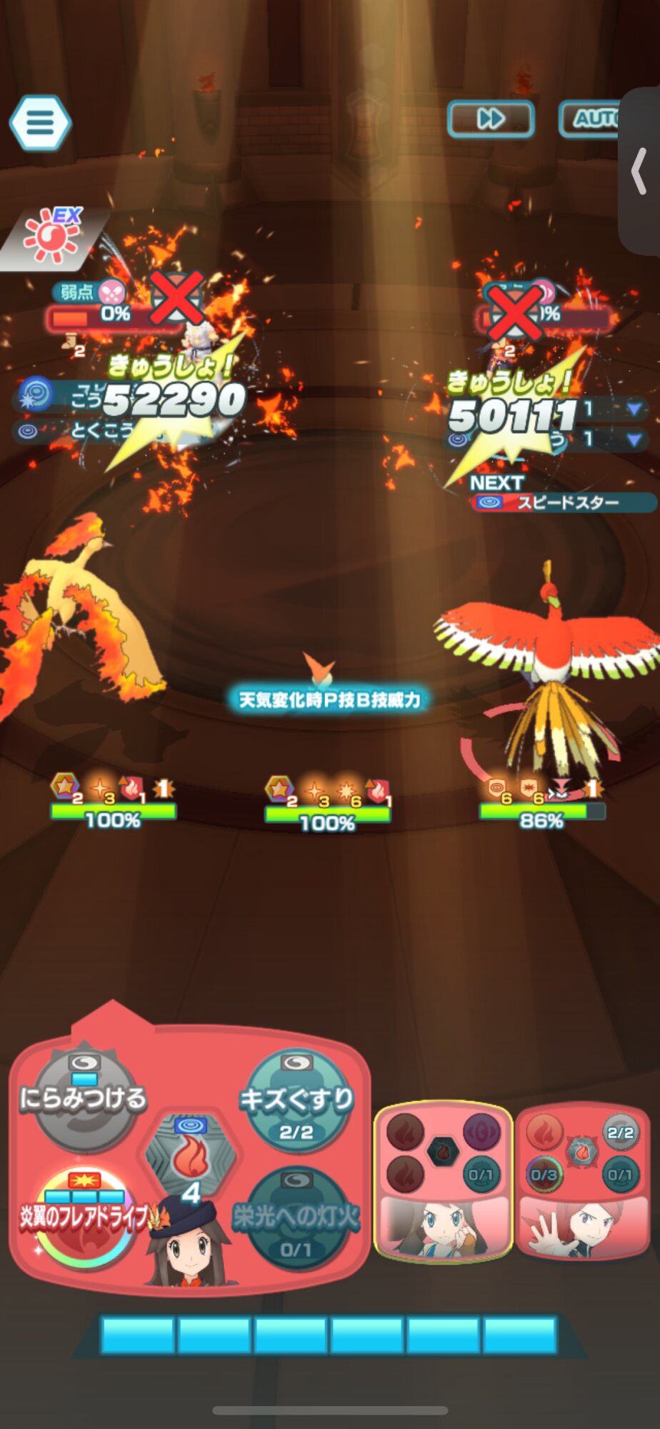 Cシルバー技3、アナザーヨウ技1、アクロマ技2で全員生存クリア行けました!