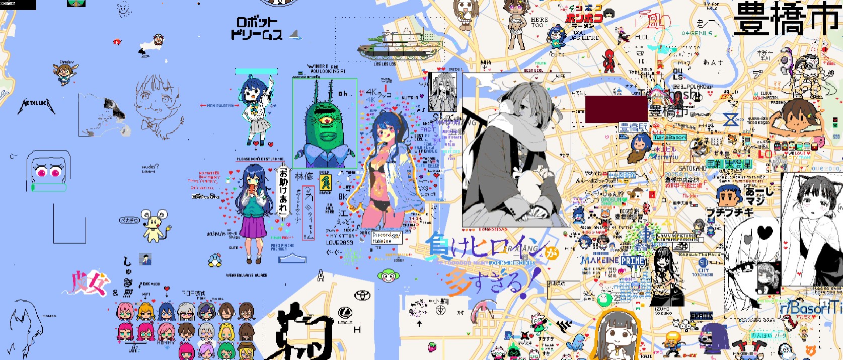wplace見てて飽きないから好き。最近、愛知県の三河湾(豊橋近くの海)に静ちゃんや詩人などを発見してキュン死した。作者に感謝。