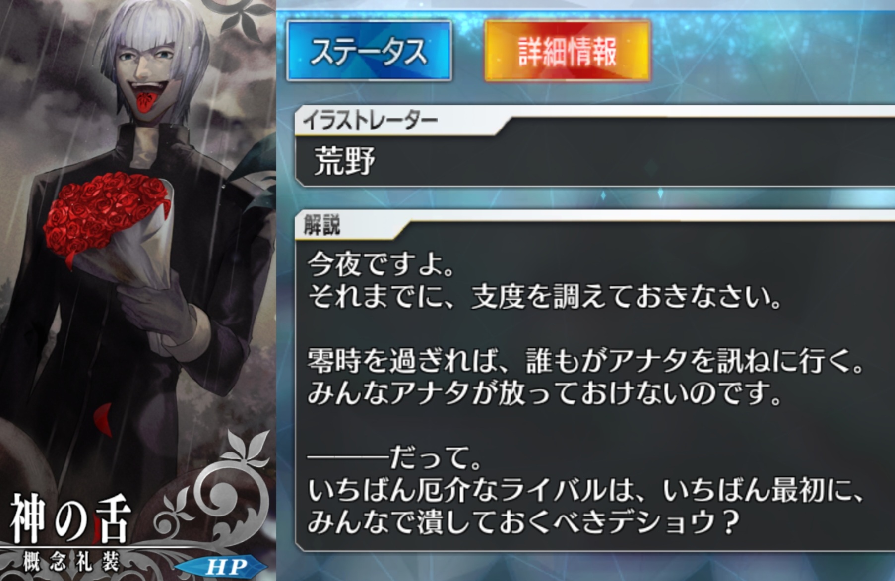 こいつはFGOに影も形もないからまだしも礼装で誰?言われるのも珍しくないんだから名前くらい載っけとけと思う