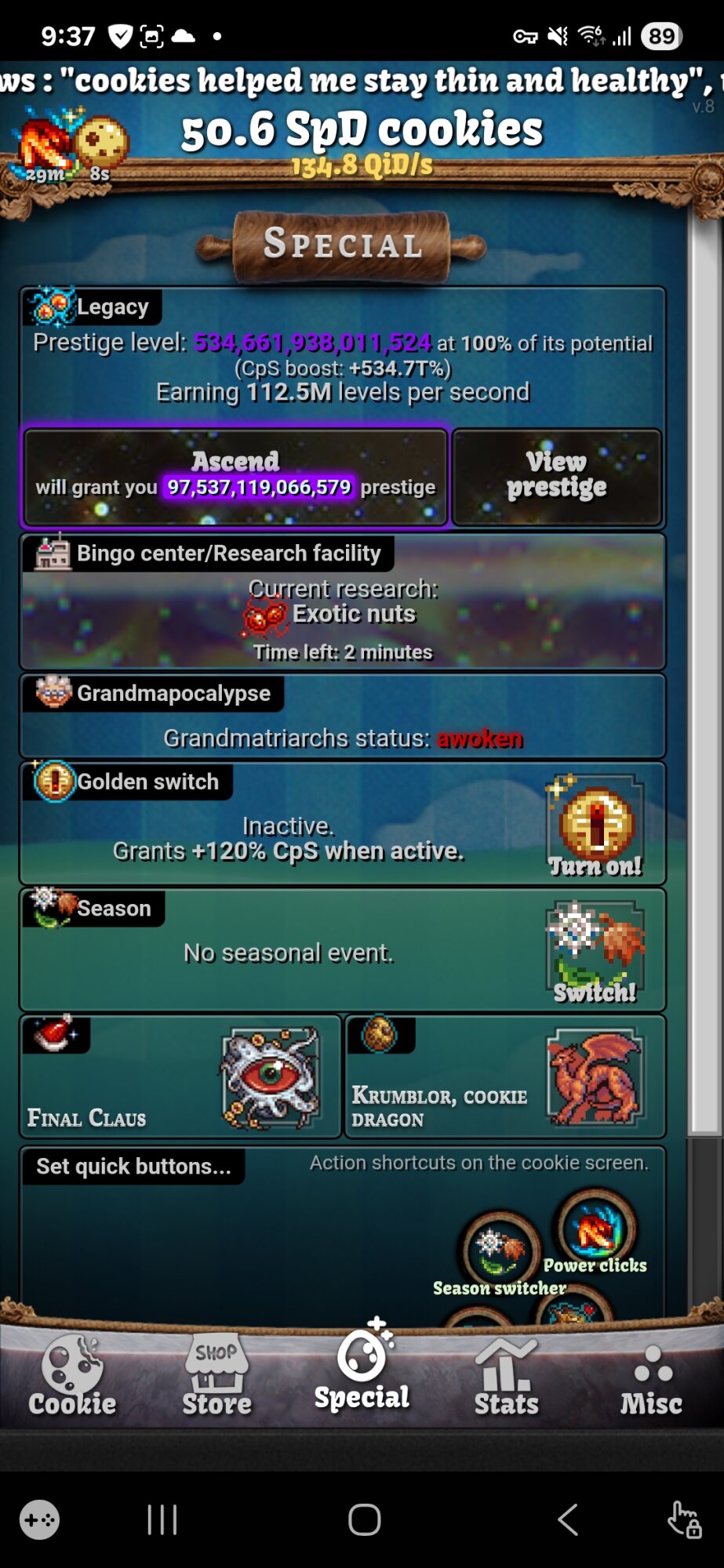 アップグレードのフレーバーテキストがクッキーを焼くために無からクッキーを生み出すだの平行宇宙へ侵攻するだのとインフレが凄まじいんだよねクッキーへの執着がヤバくない?