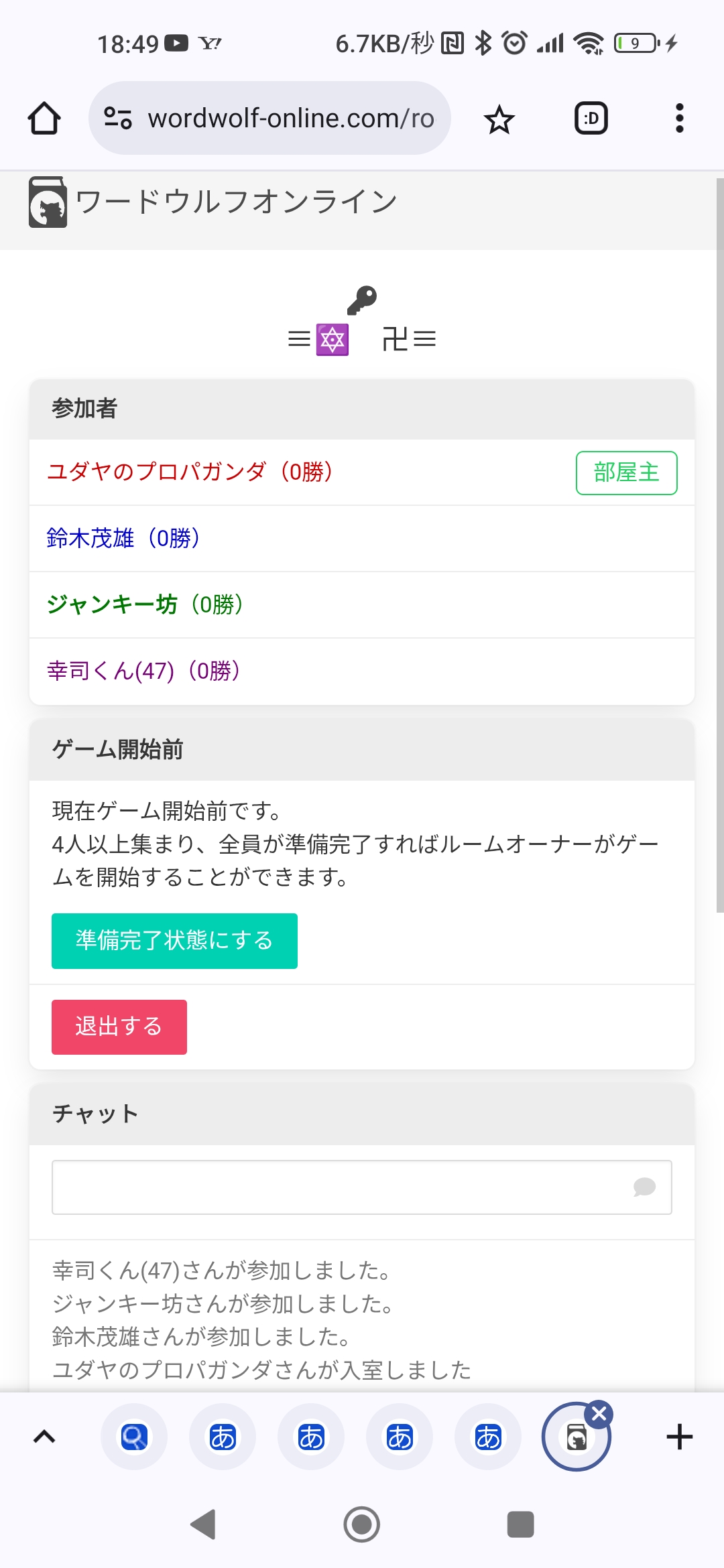 いま入室したのに待機時間でゲーム始まるなんて私は聞いてないよっ
