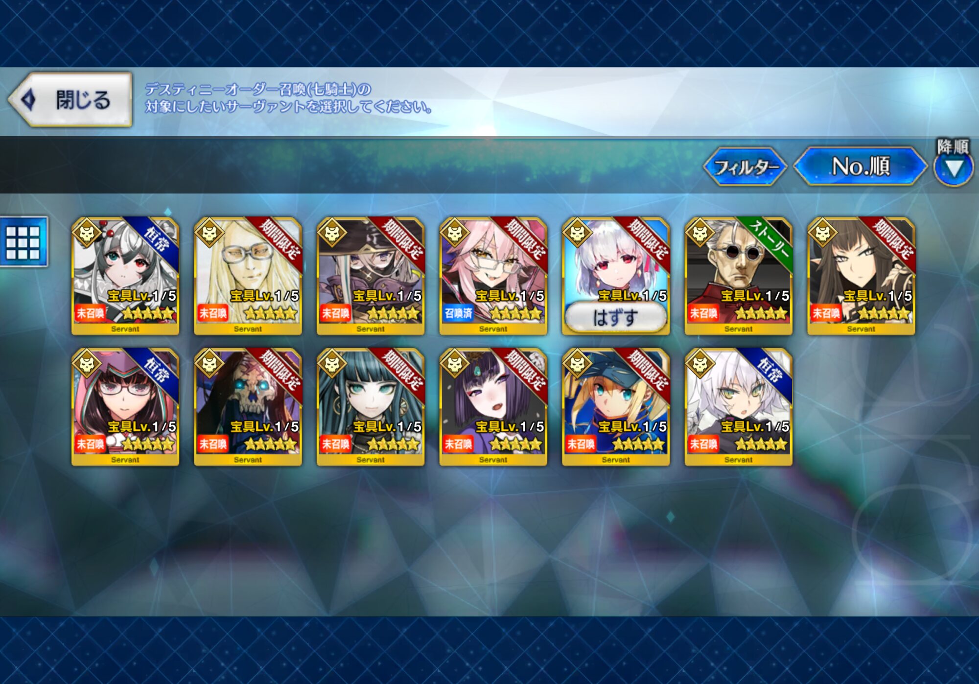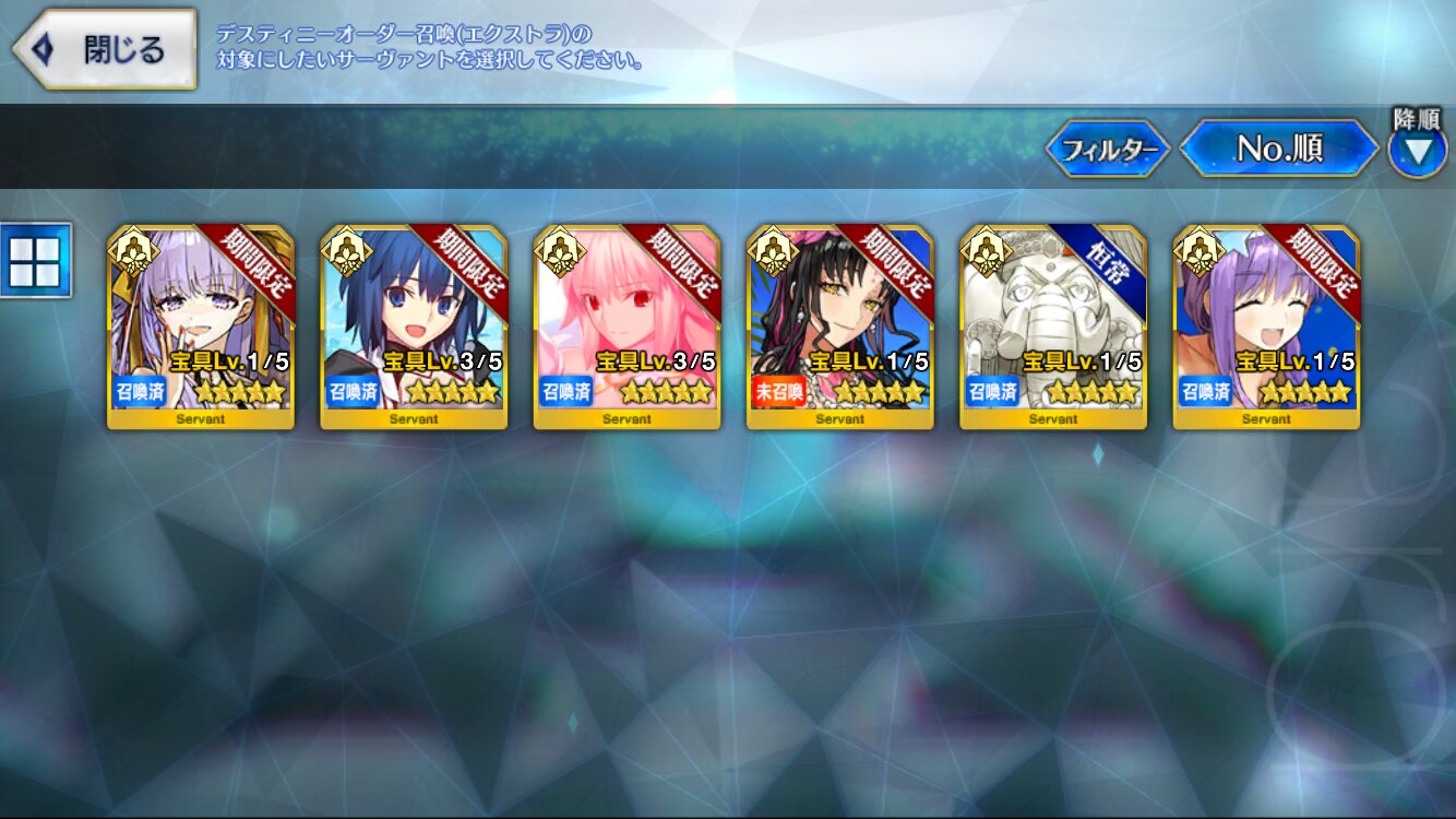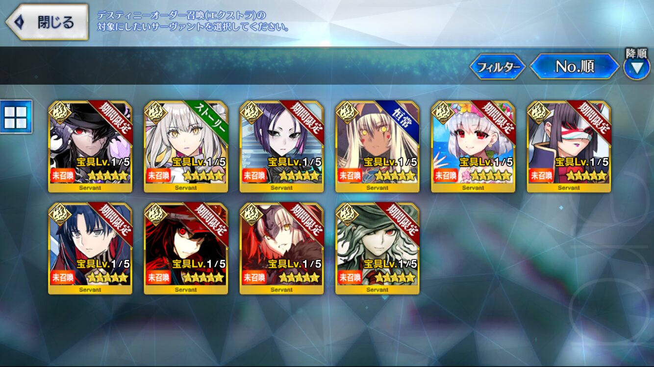 イドクリア済のマスターだけど星5は誰1人もってない