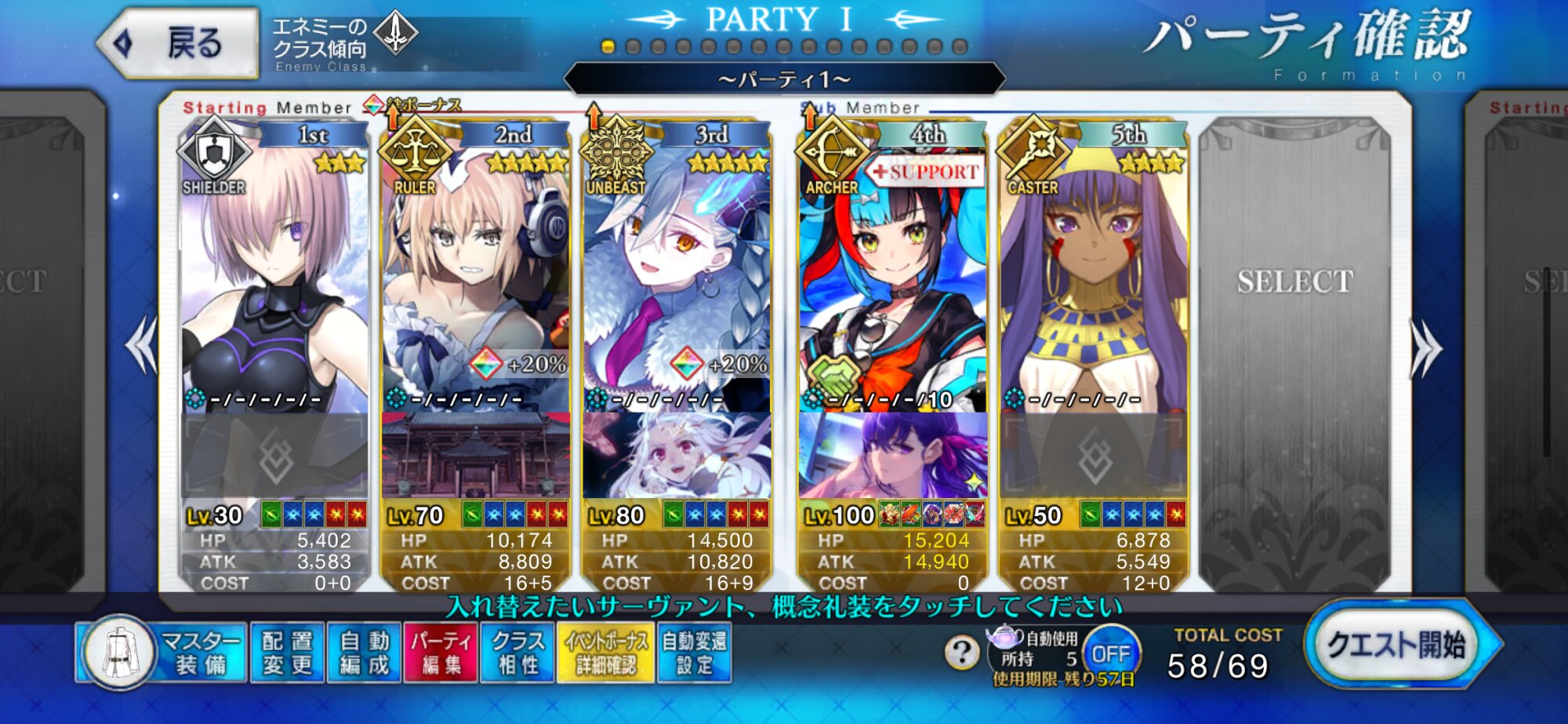 そういえばエクストラクラスが戴冠戦間近だから経験値2倍あるのか。今が所長メタトロン他水着2人の育成チャンス