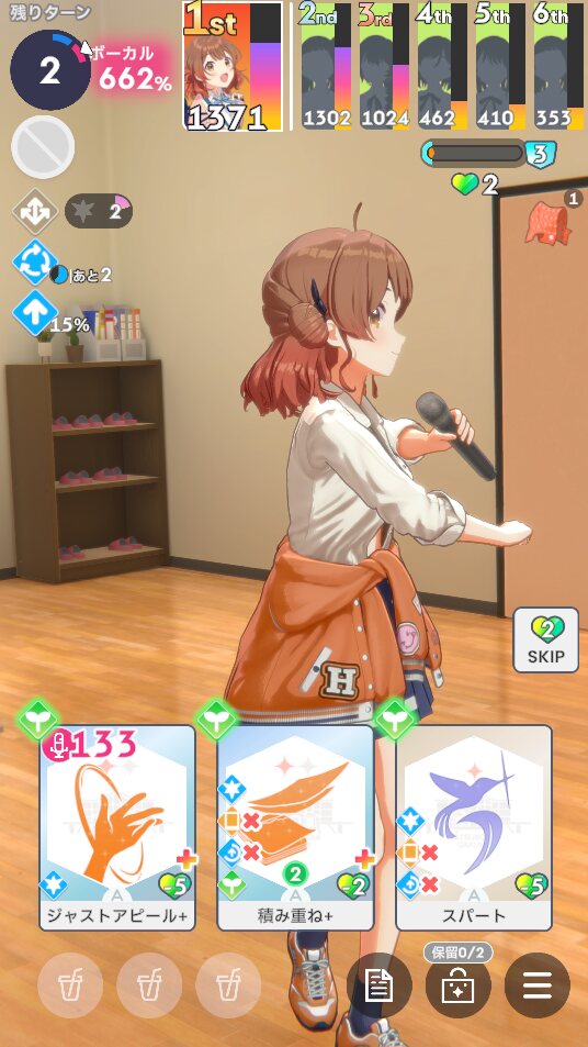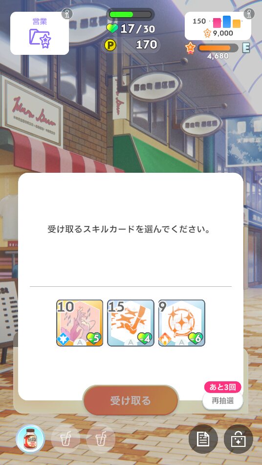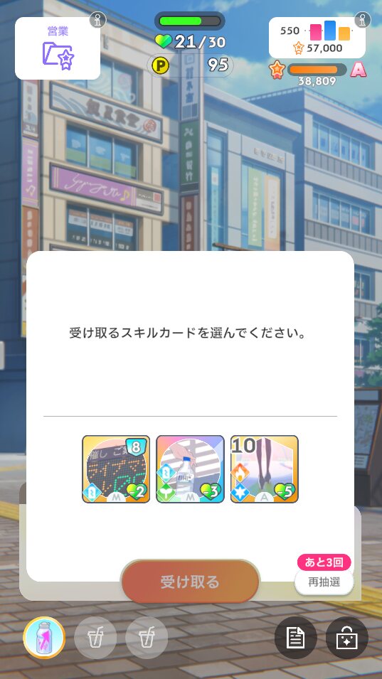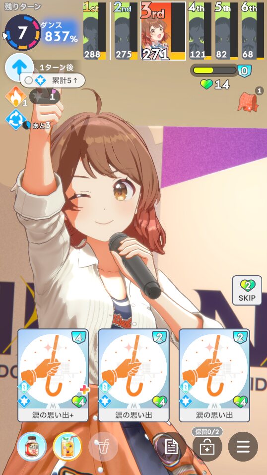 ・予定や使用スキルカードなど、プロデュース中の選択肢をダイスで決定しながらNIAプロを進んでいきます、ままならない日々を楽しもう