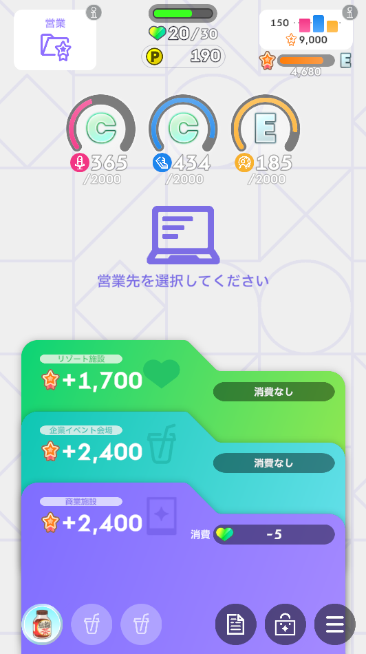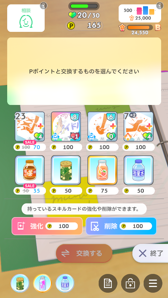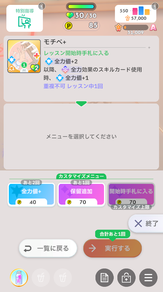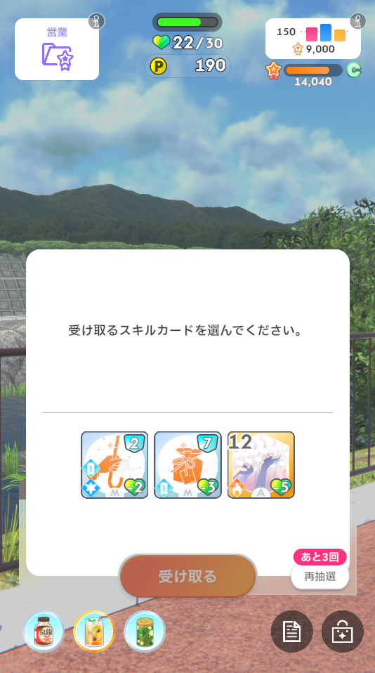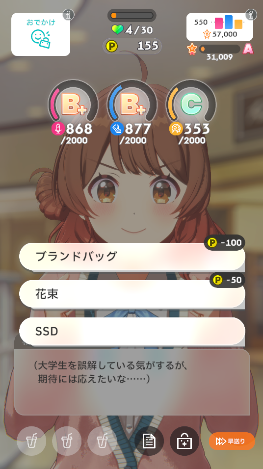 ・体力やPポイントなどによって実行できない選択肢の場合は振り直します
