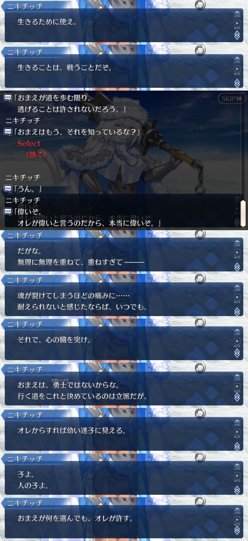 出力のされ方は「そなたが無理なら朕がやろう」と「無理になったら心臓を突け」で違うけど……こう、藤丸への肯定とその上で案ずる心がある部分というか……結果的に激励や支える手の一つになってる部分というか……