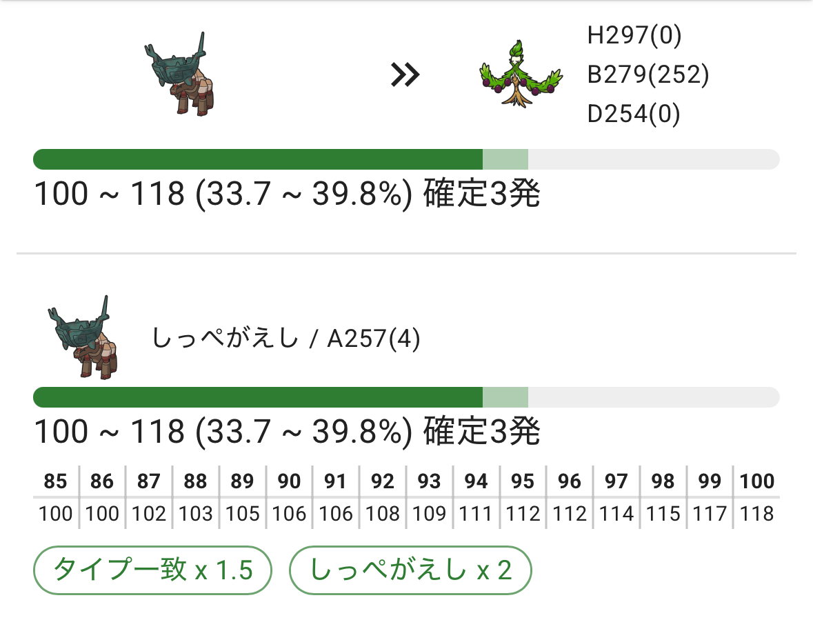 ☆5相手で全部しっぺがえし想定は流石に無理が有るし、グラスフィールドの回復もあるから実際には確定でもっと動ける