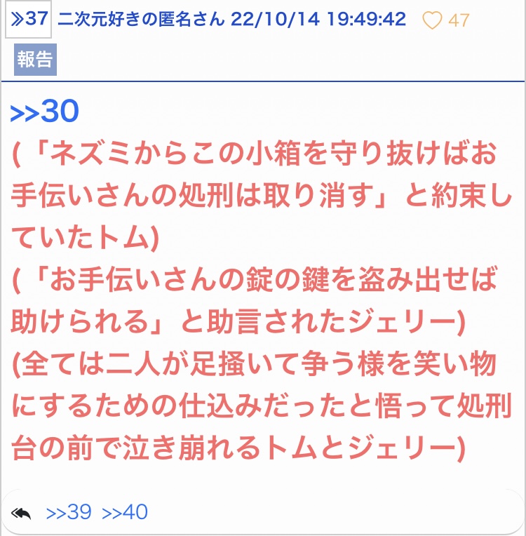 - 70二次元好きの匿名さん25/08/13(水) 06:52:51トム 1600ベリー ジェリー1310ベリー?