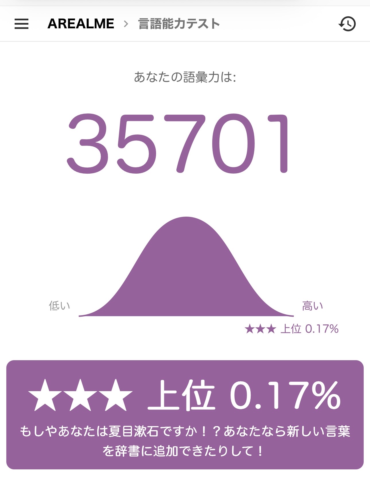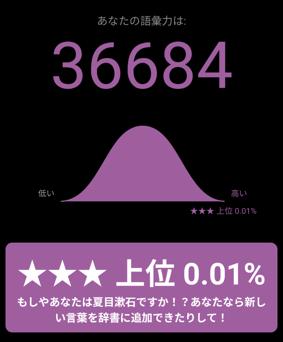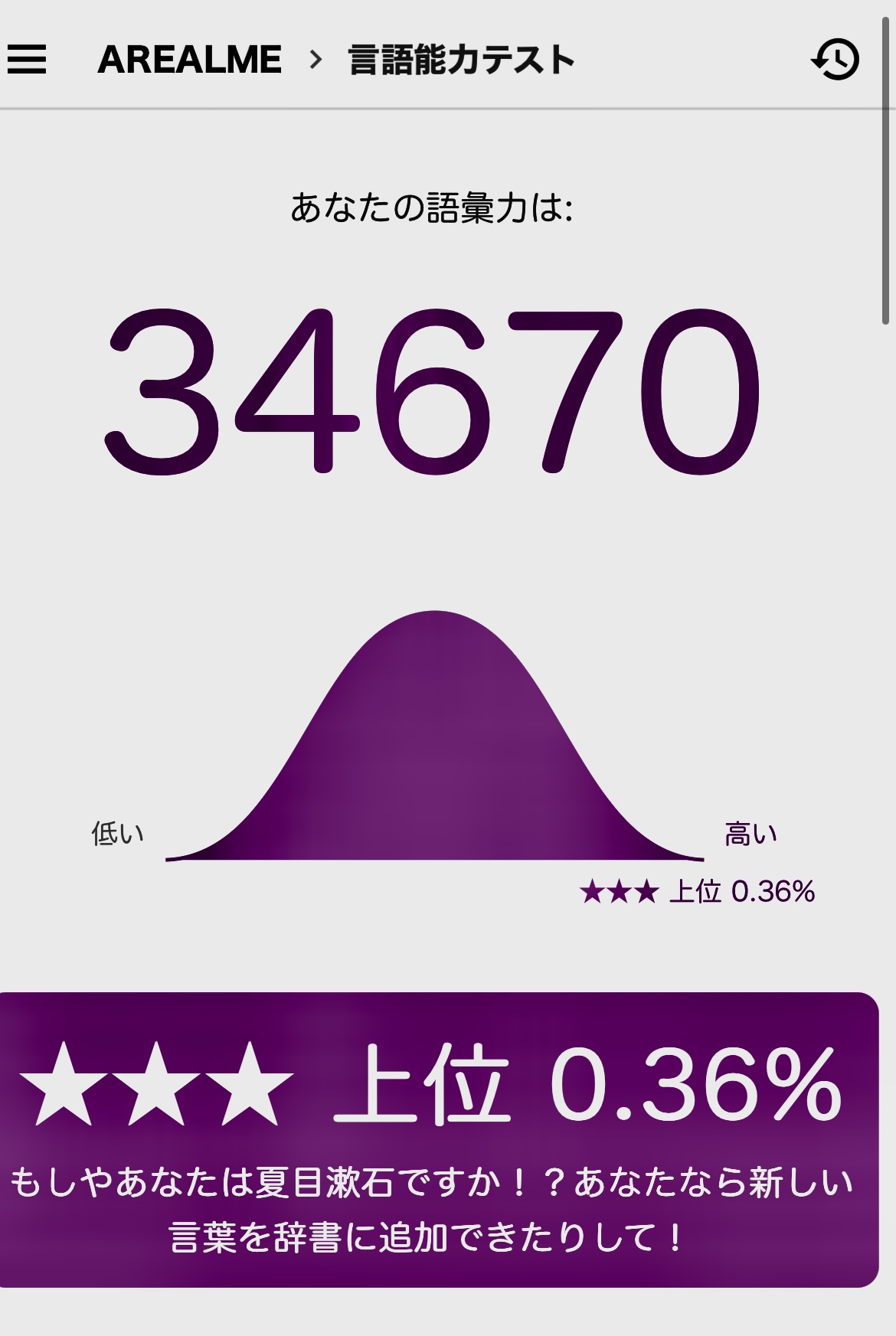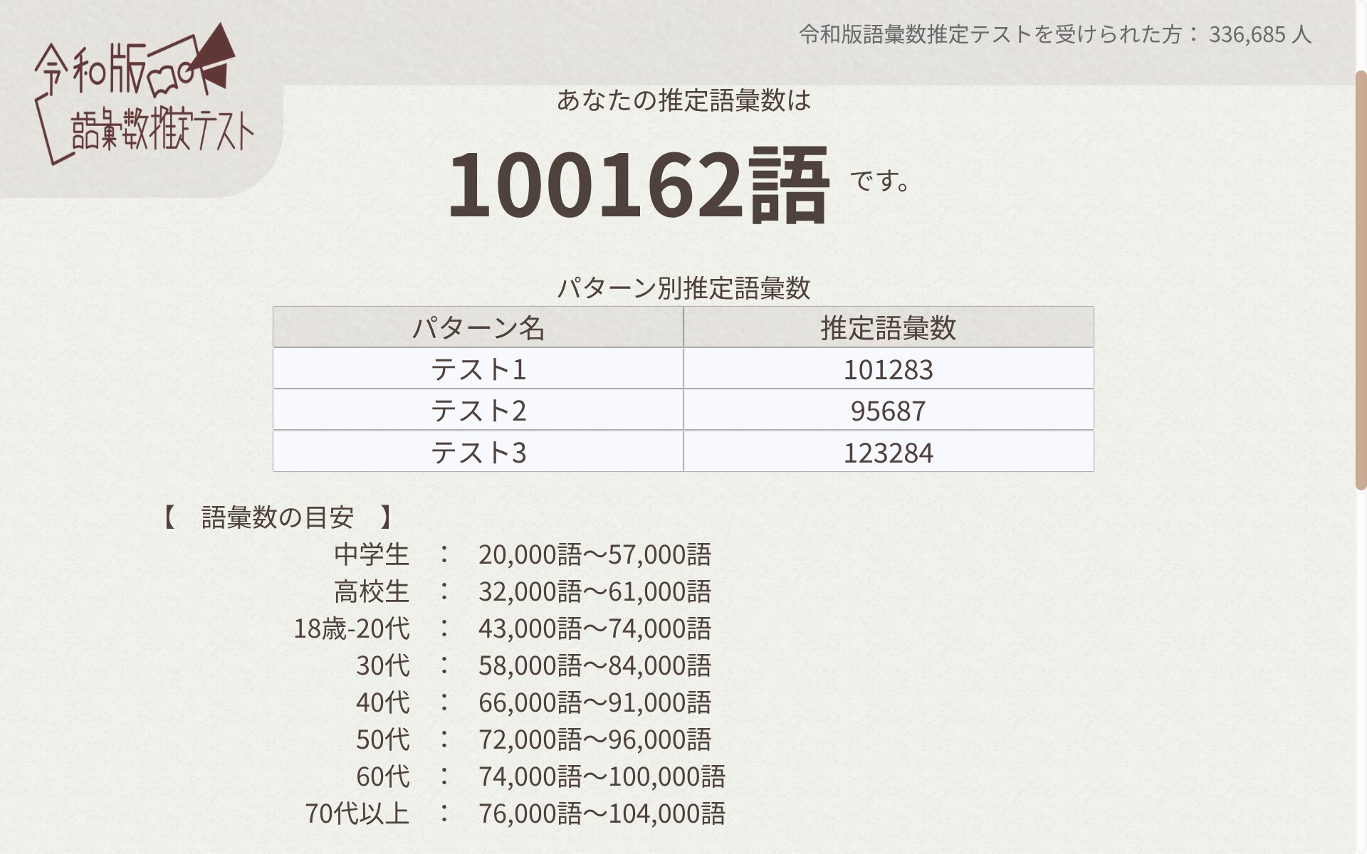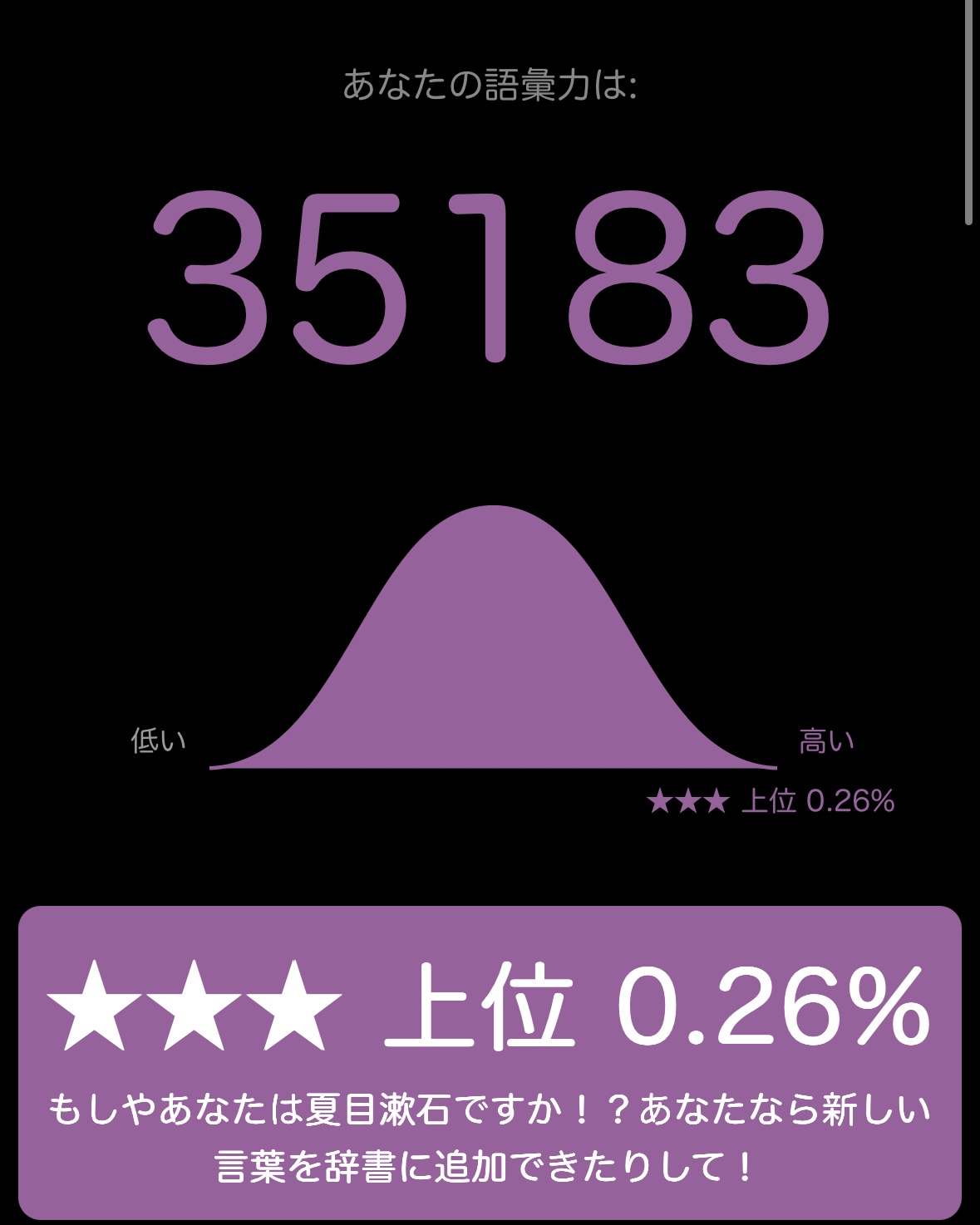 日本語ボキャブラリーテスト簡単な質問に答えて語彙力をあなたの語彙力を確かめてみましょう!登録ナシ!www.arealme.comそしてこれが幽玄のテスト結果