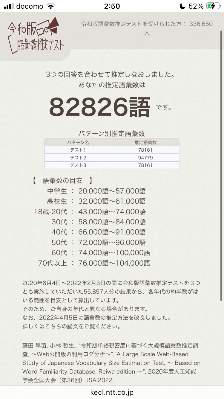 令和版語彙数推定テストwww.kecl.ntt.co.jp - 79二次元好きの匿名さん25/08/08(金) 01:42:23