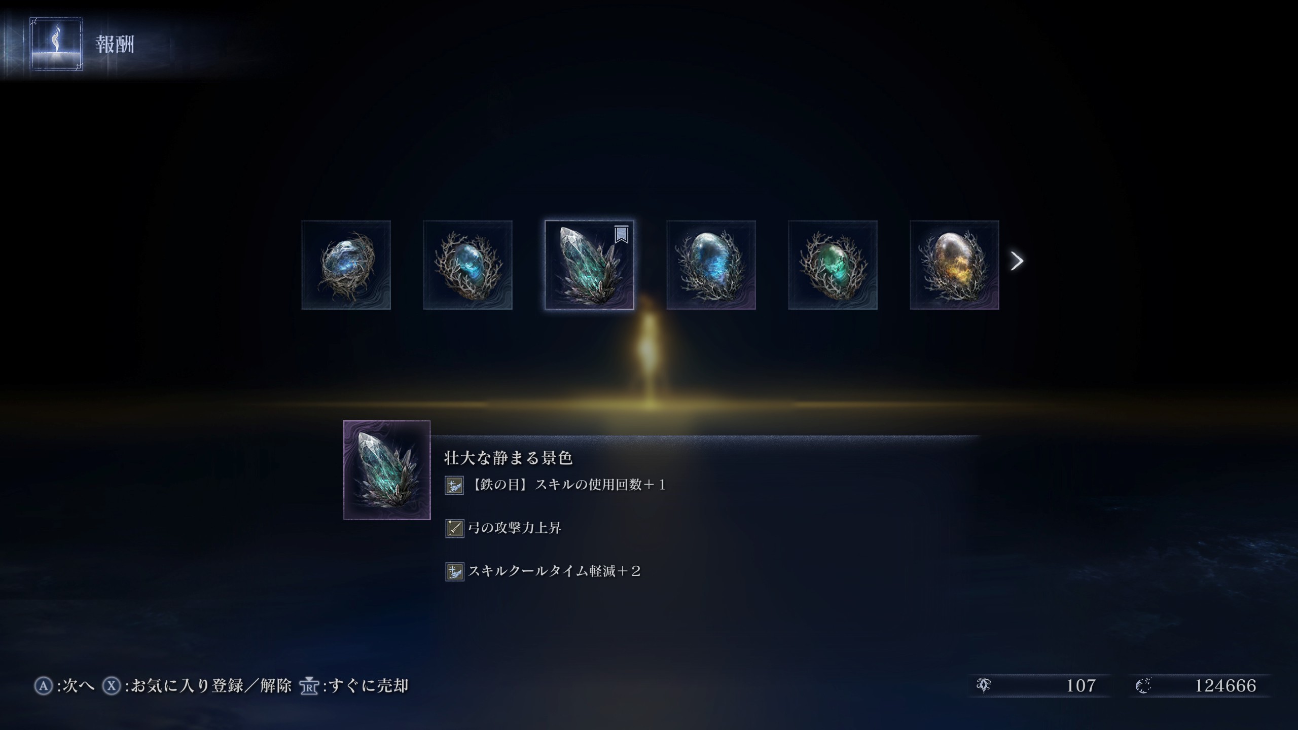 凍傷、攻撃スタミナ回復に付いてた屑輝石最初はおまけと思ってたんスけど敵が複数なら魔法弾も複数になって離れた位置からのそこそこのダメージ与えれたりと雑魚散らしや序盤ボスで活躍して安定度上がったんだよねすごくない?
