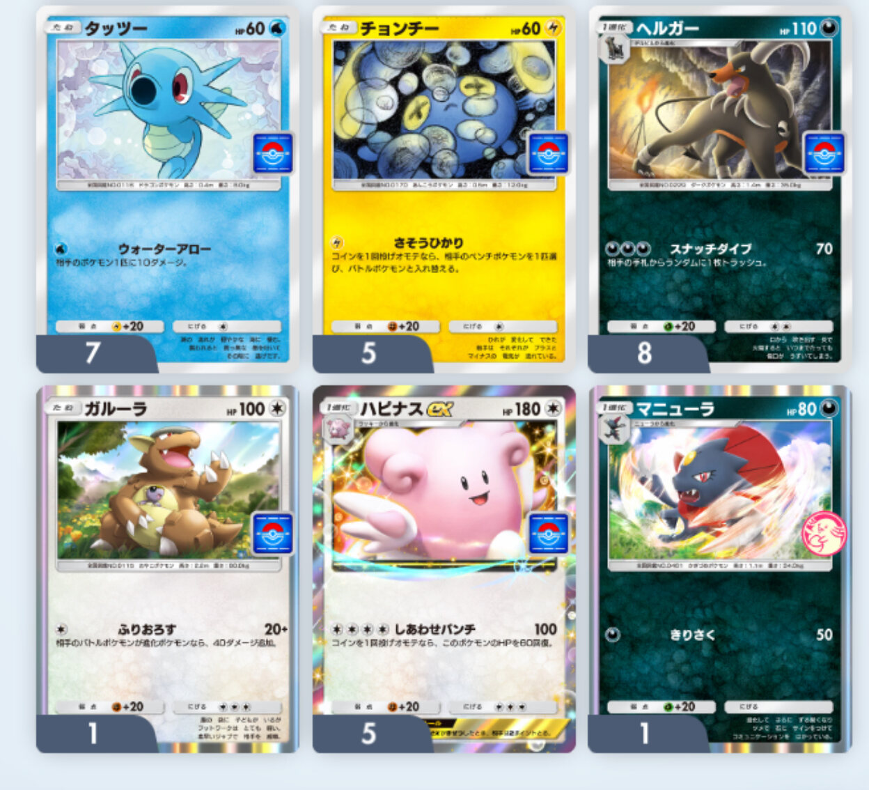 主人公1枚 ライバル1枚 ジムリ1枚 四天王1枚