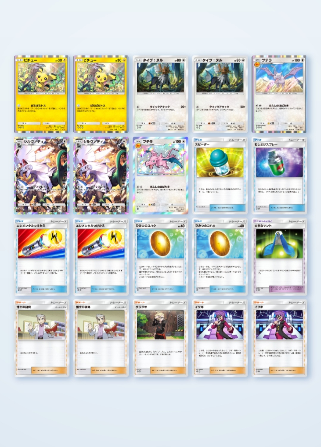 しかもデッキも20枚で組むと決まってる上にモンスターボールとオーキド博士で4枚使うのはほぼ決まってるから自分で考えるのは事実上16枚