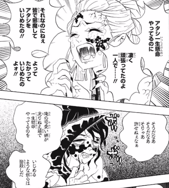 生前の記憶思い出してから堕姫はヒデェ名前っていうの無惨に砂かけてて好き