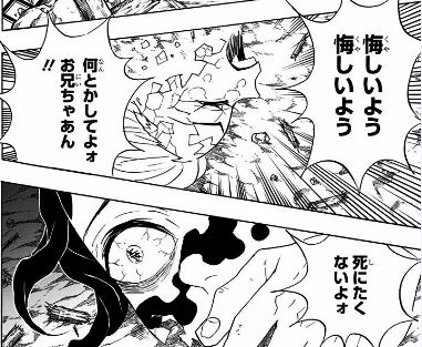 戦ってるときは話長いよ!って思ってたけど兄妹ゲンカからの炭治郎の仲裁、過去回想の流れがすっごい読みごたえがあって好きなキャラになった。