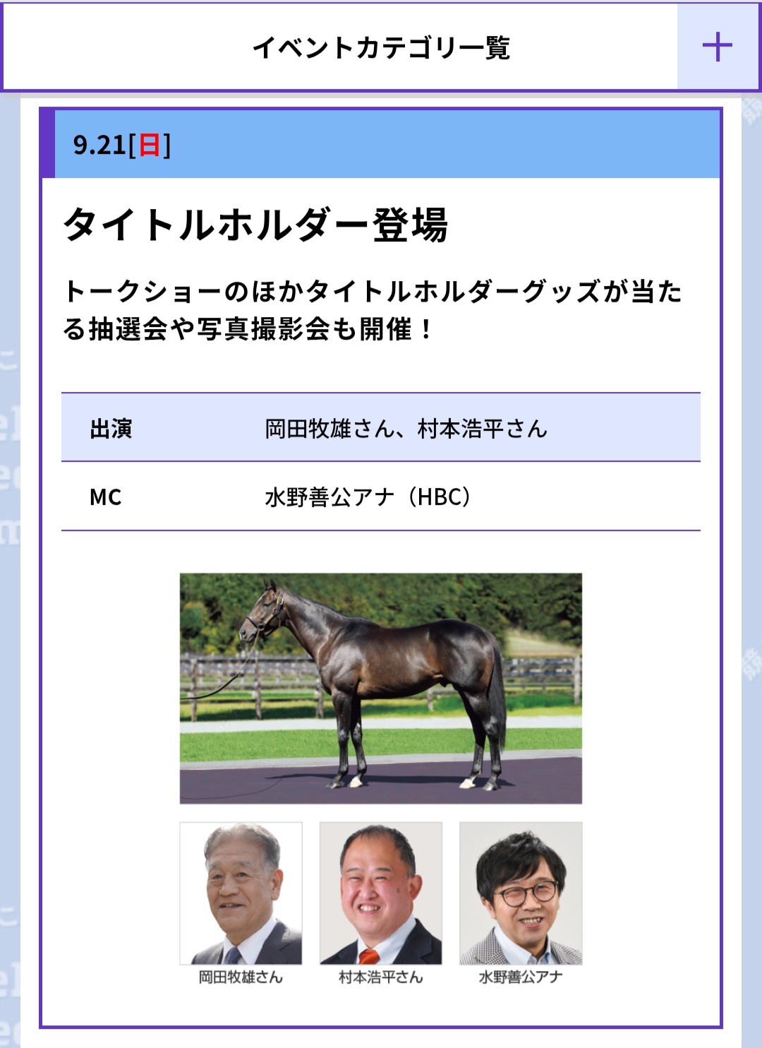 その前が2019年のホッコータルマエでそっからはコロナ禍でイベント関連休止が続いていたしね
