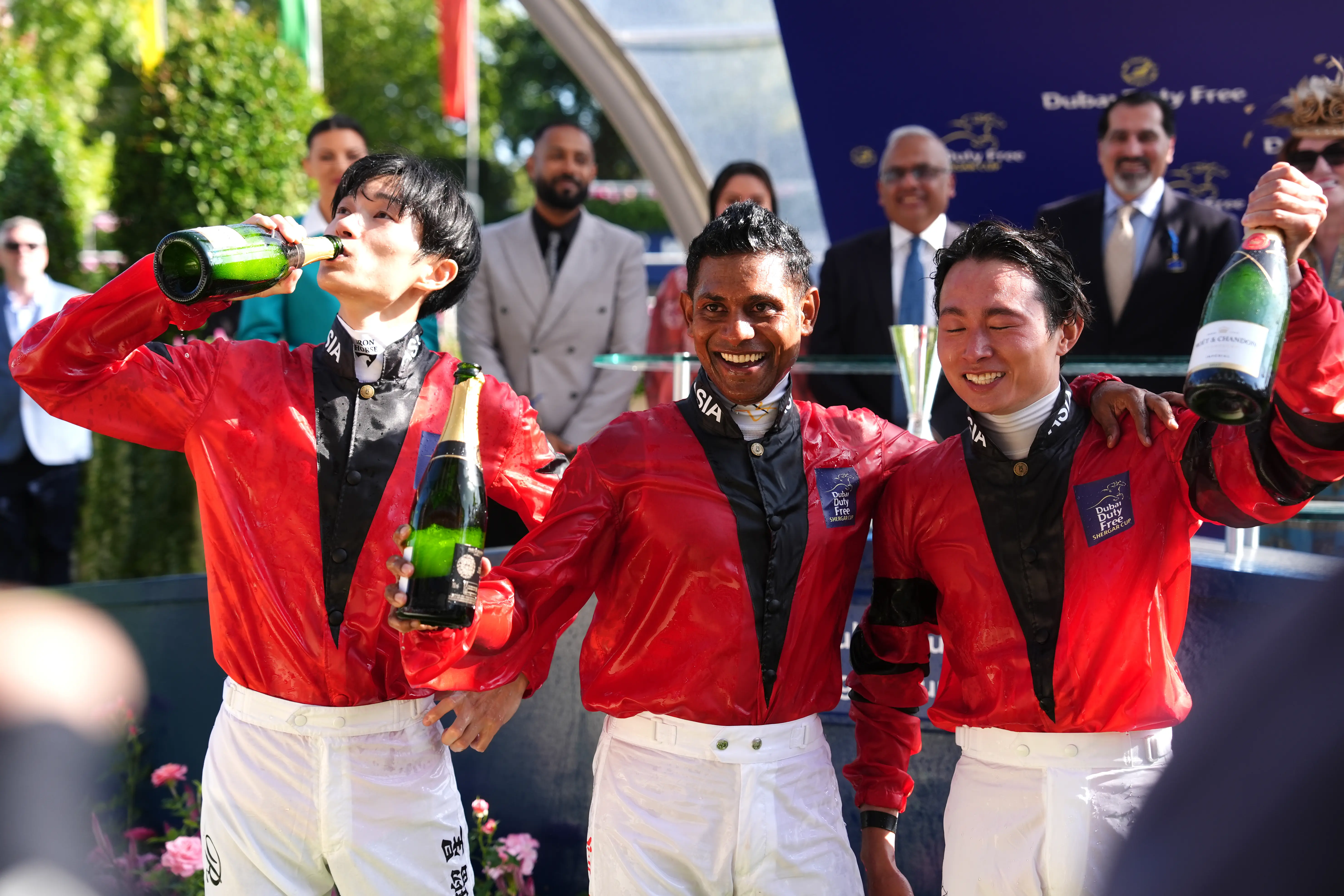 Team Asia's Ryusei Sakai (left) and Suraj Narredu celebrate after winning the Dubai Duty Free Shergar Cup at Ascot racecourse, Berkshire. Picture date: Saturday August 9, 2025 Stock Photo - AlamyDownload this stock image: Team Asia's Ryusei Sakai (left) and Suraj Narredu celebrate after winning the Dubai Duty Free Shergar Cup at Ascot racecourse, Berkshire. Picture date: Saturday August 9, 2025. - 3CC0E0K from Alamy's library of millions of high resolution stock photos, illustrations and vectors.www.alamy.com - 150二次元好きの匿名さん25/08/10(日) 16:22:02
