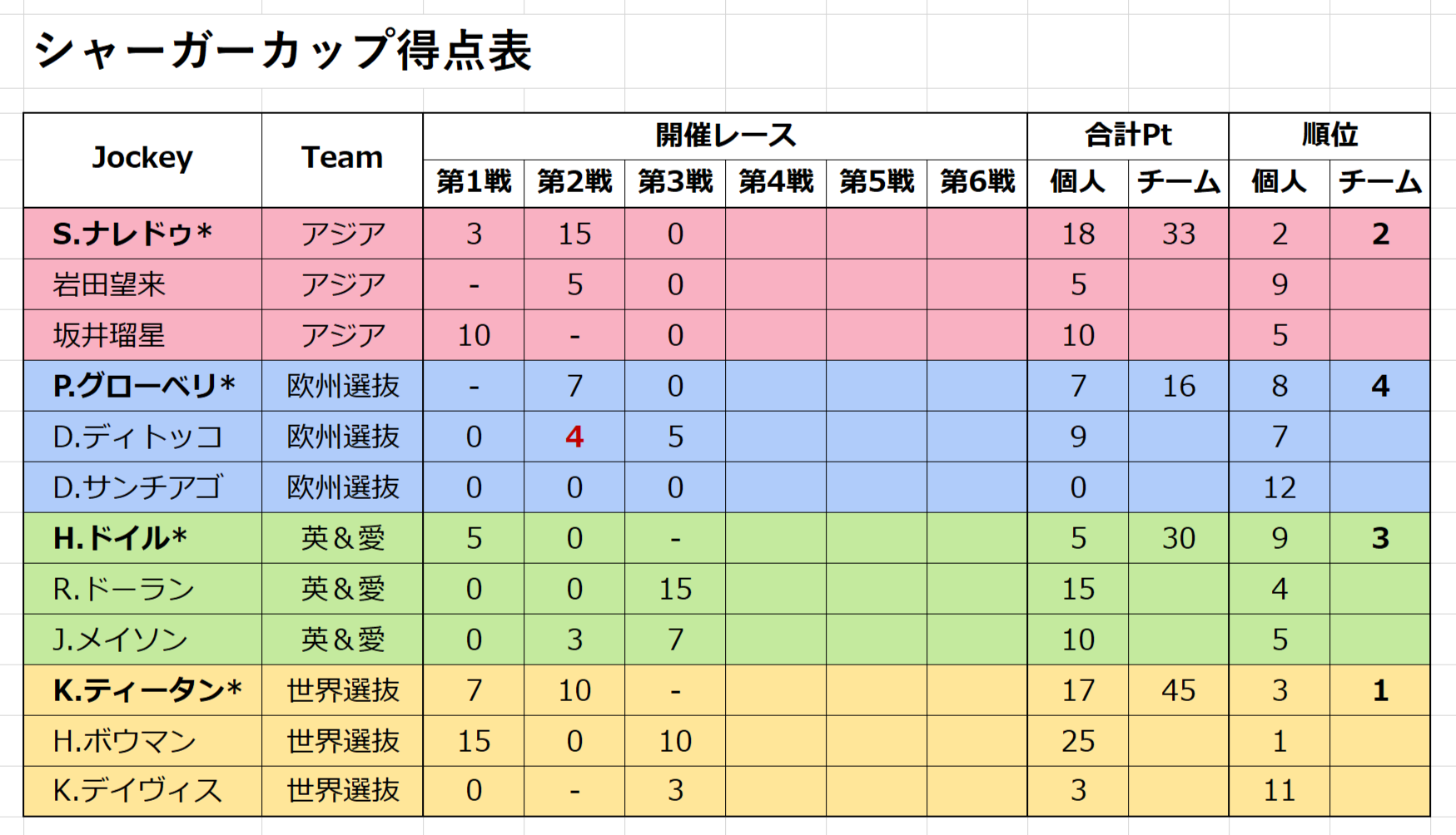 直前の競走除外など、騎手側の理由以外で騎乗/出走機会を失った場合は、チームおよび乗るはずだった騎手に4点が入る - 9二次元好きの匿名さん25/08/09(土) 21:11:47