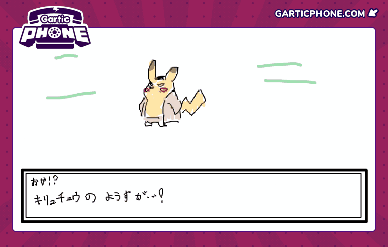 通常ルール=全員同時にお題を「文章⇒絵⇒文章⇒絵⇒…」と交互に伝えていくお絵描き伝言ゲームなんや