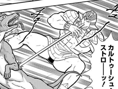 ツタンカーメンの先代の王が信仰する神をアテン神に変えようとしたけど結局ツタンカーメンの代でアメン信仰に戻ったみたいな史実の話、学研図鑑によるとかつてカーメンとエジプトの王座を争ったとかなんとかな超人がいたらしいし肉世界だと実はこの両者のデスマッチだったのだ!なオモシロ起源説になってるのかも
